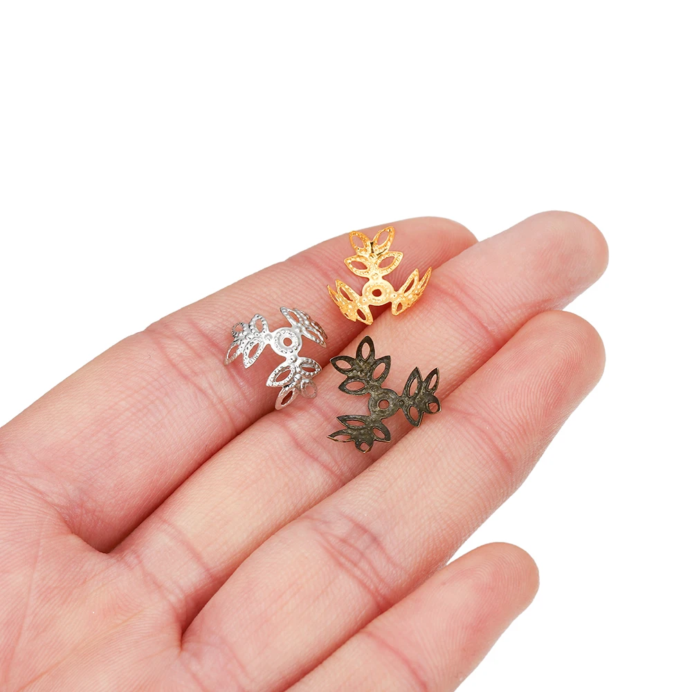 100 шт. Клевер в форме листьев 16 мм филигранные колпачки из бисера для изготовления ювелирных изделий Цветочные колпачки из бисера фурнитура DIY Браслеты принадлежности для сережек оптовая продажа