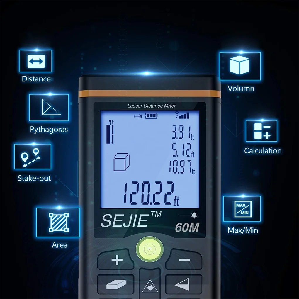 Автоматическое Хранение данных: Этот ЖК-измеритель расстояния может легко запоминать последний прибор, который вы используете, и запоминает его при выключении.