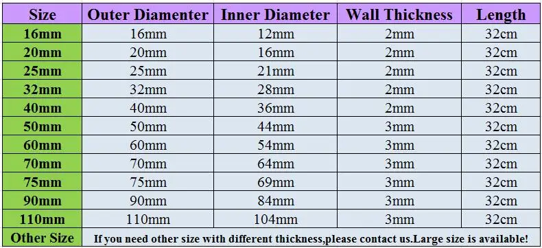 Внешний диаметр: 20 мм, 25 мм, 32 мм, 40 мм, 50 мм, 63 мм, 75 мм, 90 мм, 110 мм. Доступны другие размеры, пожалуйста, свяжитесь с нами, если вам нужно.