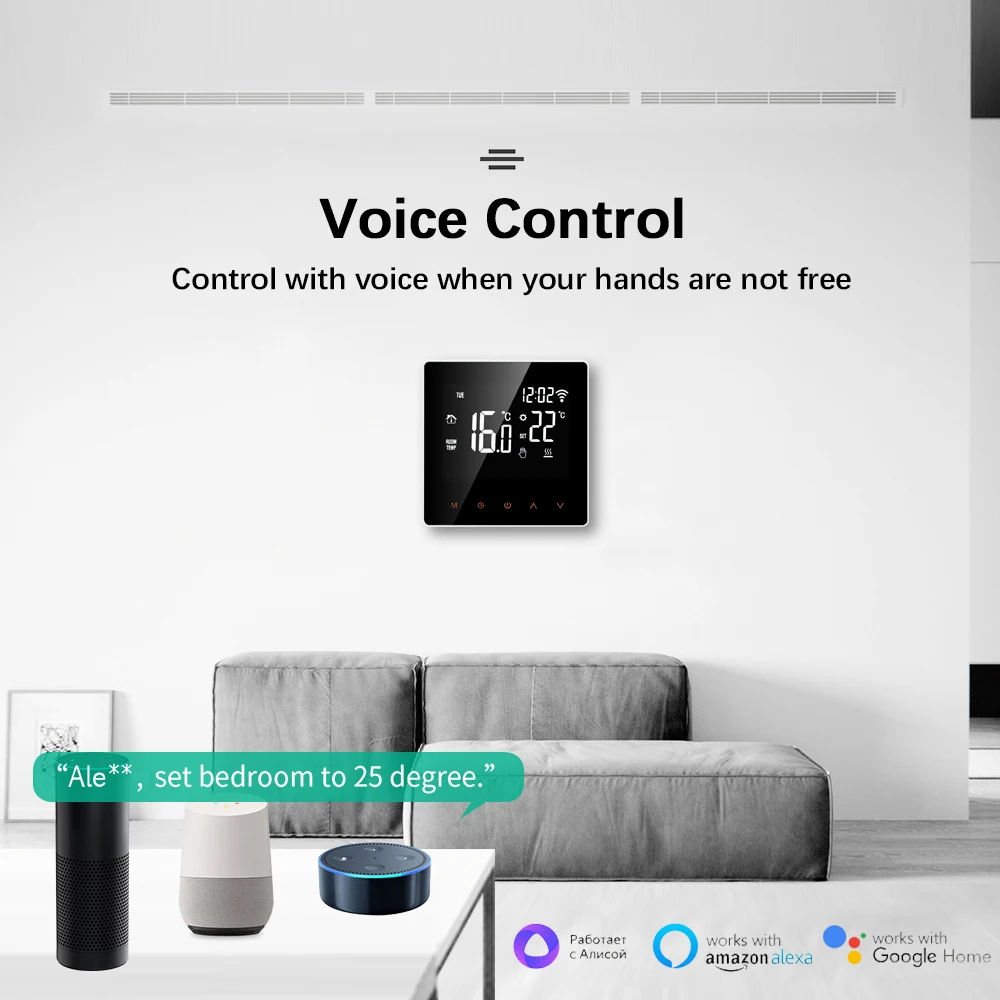 Управление через приложение-умный термостат, которым можно управлять с помощью телефона, прежде чем возвращаться домой. (Приложение: Wisen или Tuya)