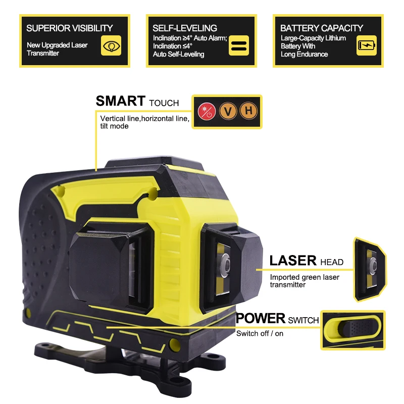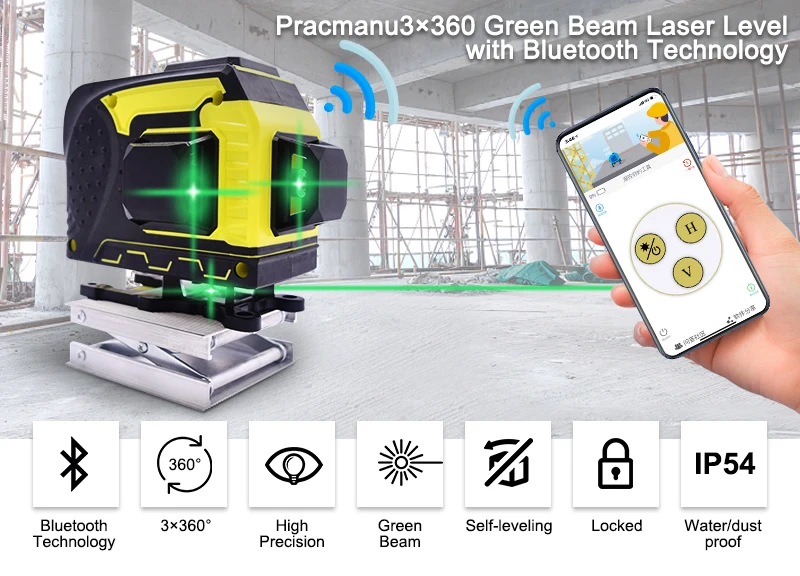 Pracmanu 3*360 лазерный уровень зеленого луча с технологией Bluetooth