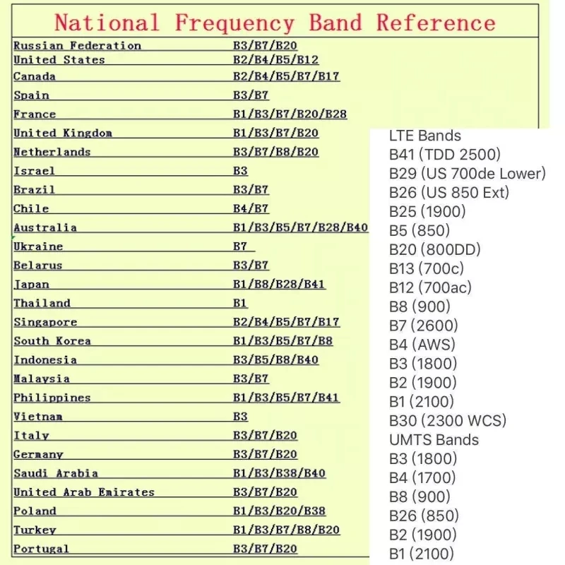 Working band: LTE: B1/3/7/8/20/28/32/38/41, UMTS: B1/8
