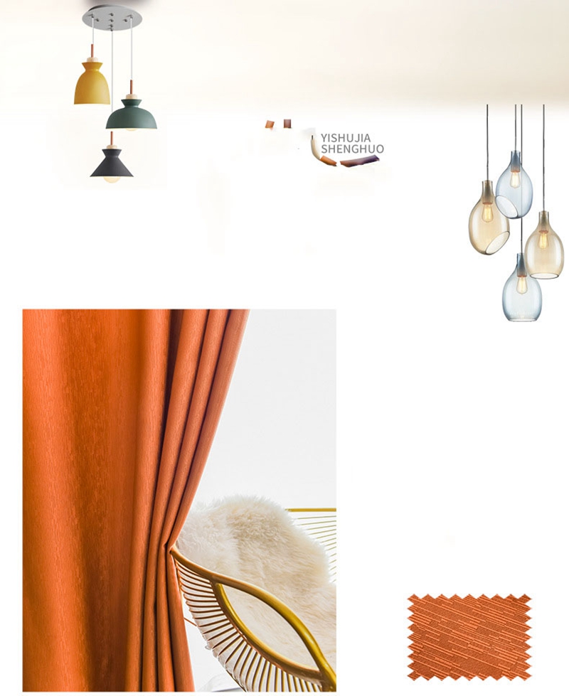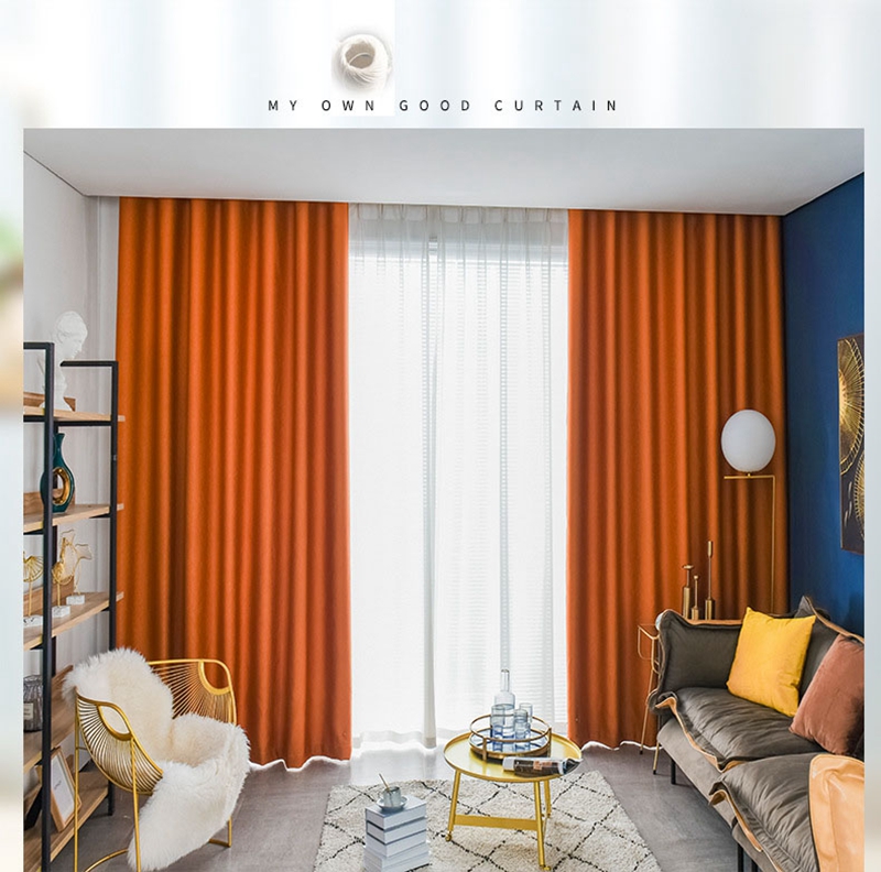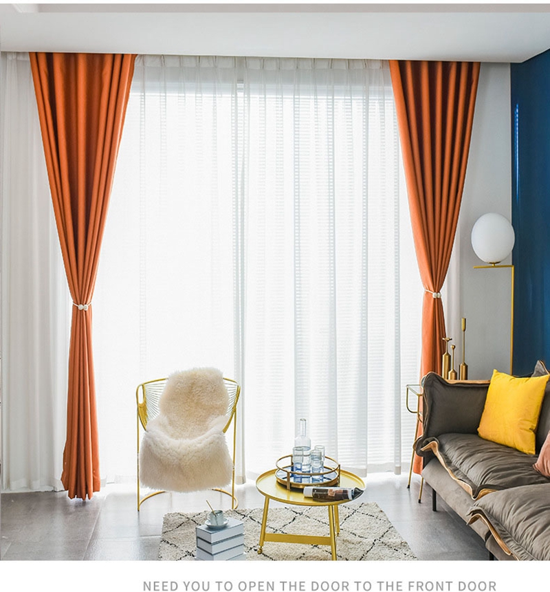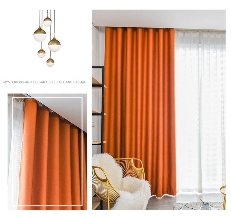 Nordic Light Luxury Textured Jacquard Blackout Curtain For Living Room Bedroom Modern Orange Grey Window Drapes Custom
