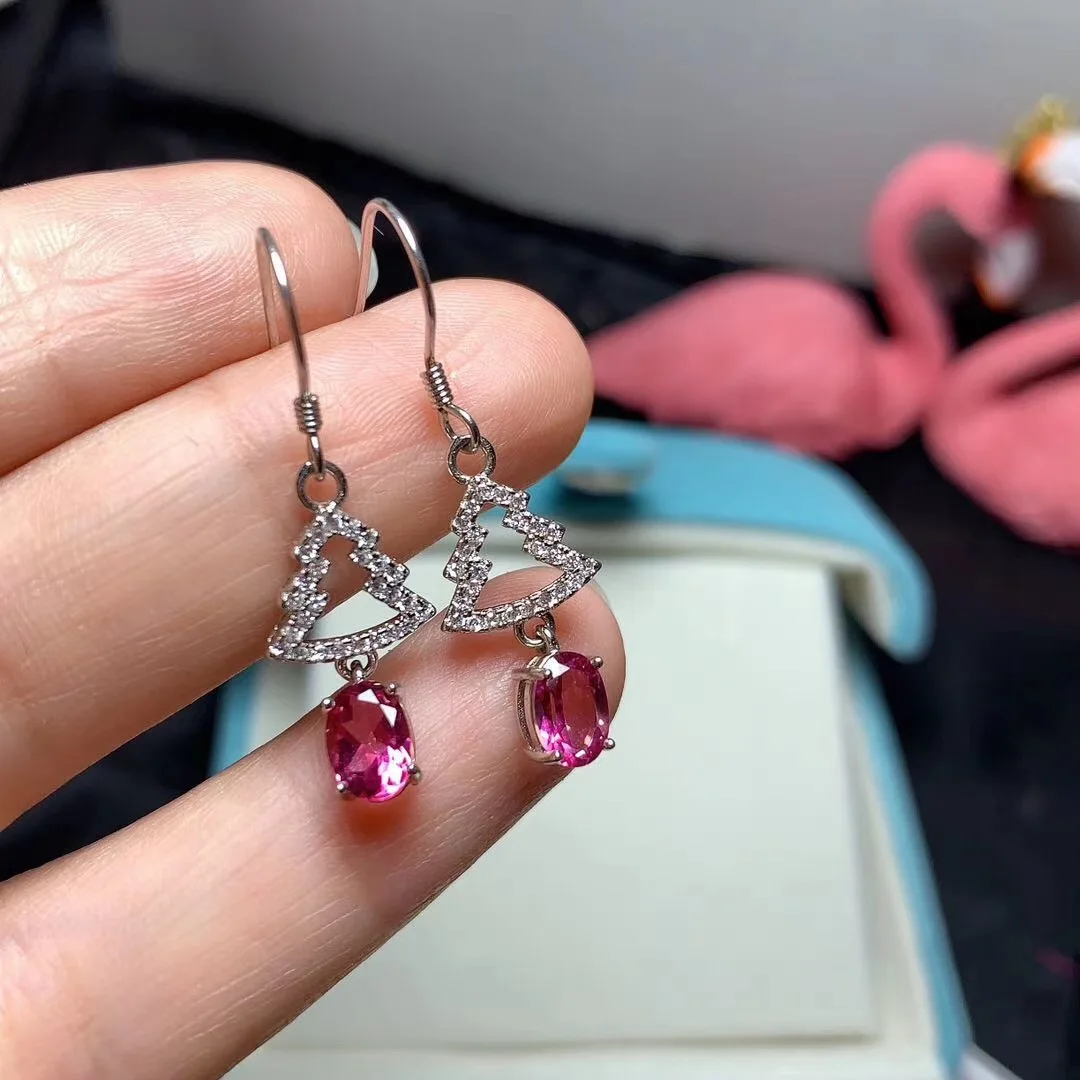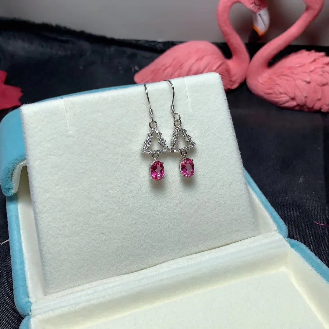 natural pink Topaz Silver Earrings 925 Sterling SilverFine Jewelry Gift For Women Lady Girls size 5x7mm