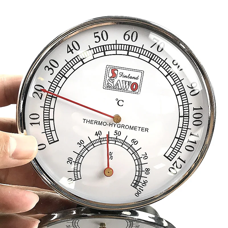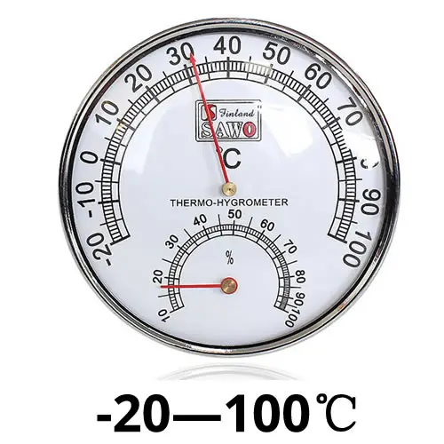 Этот термометр и гигрометр изготовлены из алюминиевого сплава, пластика и ПВХ. Циферблат четкий и тонкий, а шкала легко читается. Подходит для саун, ванных комнат, офисов, спален и других мест. Сзади есть отверстия для подвешивания на стену. Вкл.