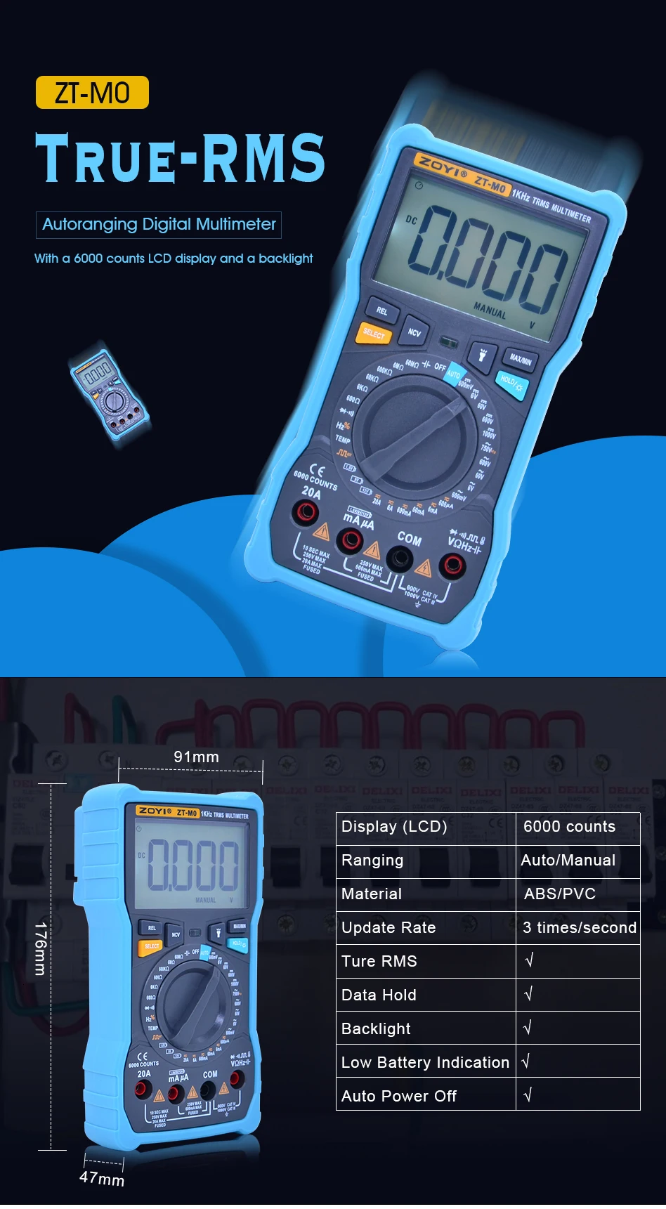 Этот продукт оснащен аккумулятором, true-rms, автоматическим цифровым мультиметром с ЖК-дисплеем 6000 подсчетов и подсветкой.