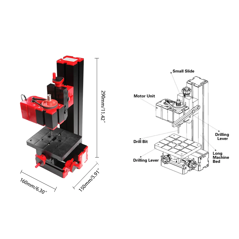 Размер металлического токарного станка: 29*15*16 см/11,42*5,91*6,30 дюймов