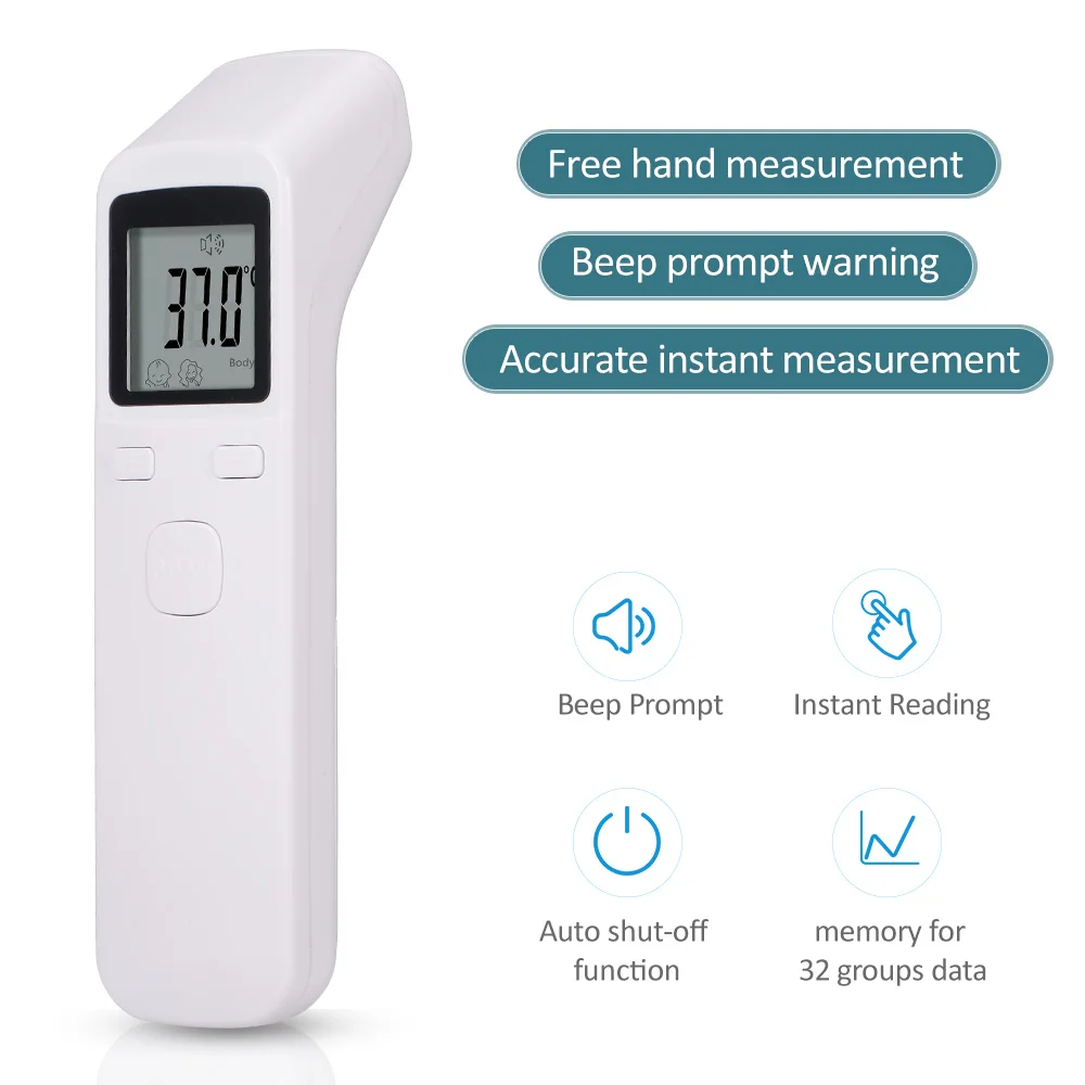 Этот инфракрасный термометр для лба предназначен для всех возрастов. Он отличается высокой точностью, интеллектуальным считыванием, звуковым сигналом и 32 набором значений памяти. Он не только поддерживает функцию лба, но и способен принимать температуру объекта.