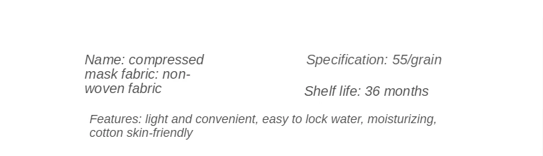 Кстати, если вам нравится наш магазин, пожалуйста, добавьте наш магазин в ваши любимые магазины, вы можете получить наше новое поступление и информацию о скидках вовремя! Описание: Вы можете заказать маску для лица в любом месте. Удобно носить с собой в путешествиях или деловых поездках. Высококачественный бамбуковый древесный уголь, нетканый материал. Безопасная для женщин маска для лица DIY. Светильник для веса и сухости. Маска Мягкая и близкая к лицу, с сильной впитывающей способностью, полностью очищает кожу от масла, косметических остатков, кутина, отмерших клеток. Спецификация: Цвет: белый Характеристика: увлажнение Материал: Нетканая ткань Вес: прибл. 60 г (52-55 шт) Количество: 55 шт./компл. посылка Посылка включает в себя: 1 х пакет листа маски Примечания: Из-за разницы между различными мониторами изображения могут не отражать фактический цвет изделия. Сравните размеры деталей с вашими, пожалуйста, учитывайте погрешность в 1-3 см из-за ручного измерения. Пожалуйста, оставьте сообщение, прежде чем дать плохие отзывы, если у товара есть какие-то проблемы. Спасибо за понимание.
