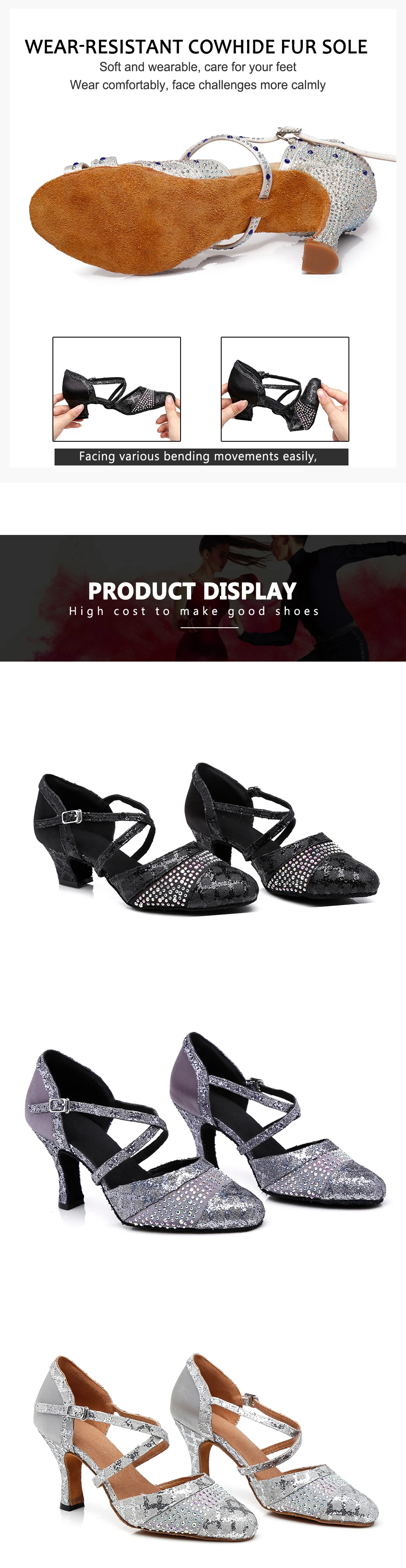 Магазин: Мы являемся профессиональным магазином танцевальных туфель с заводскими прямыми продажами. У нас более десяти лет опыта в производстве профессиональной танцевальной обуви. Мы приветствуем вашу покупку. Размер: На нашей главной странице будут отображаться Таблицы размеров в разных странах, вы можете выбрать размер в соответствии с вашей страной или длиной Вашей стопы. Ширина нашей обуви нормальная, возможно, эта обувь не подходит для людей, которые слишком тонкие или слишком толстые. Если вы не уверены в размере, пожалуйста, сначала свяжитесь с нами. Мы поможем вам решить проблему как можно скорее. Цвет: Мы показываем реальные фотографии здесь, но из-за того, что светильник отличается от компьютера, цвет может отличаться. Это нормальное явление.