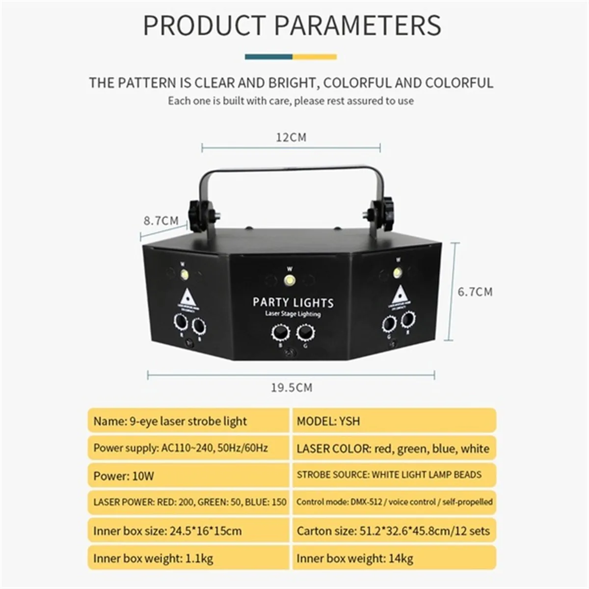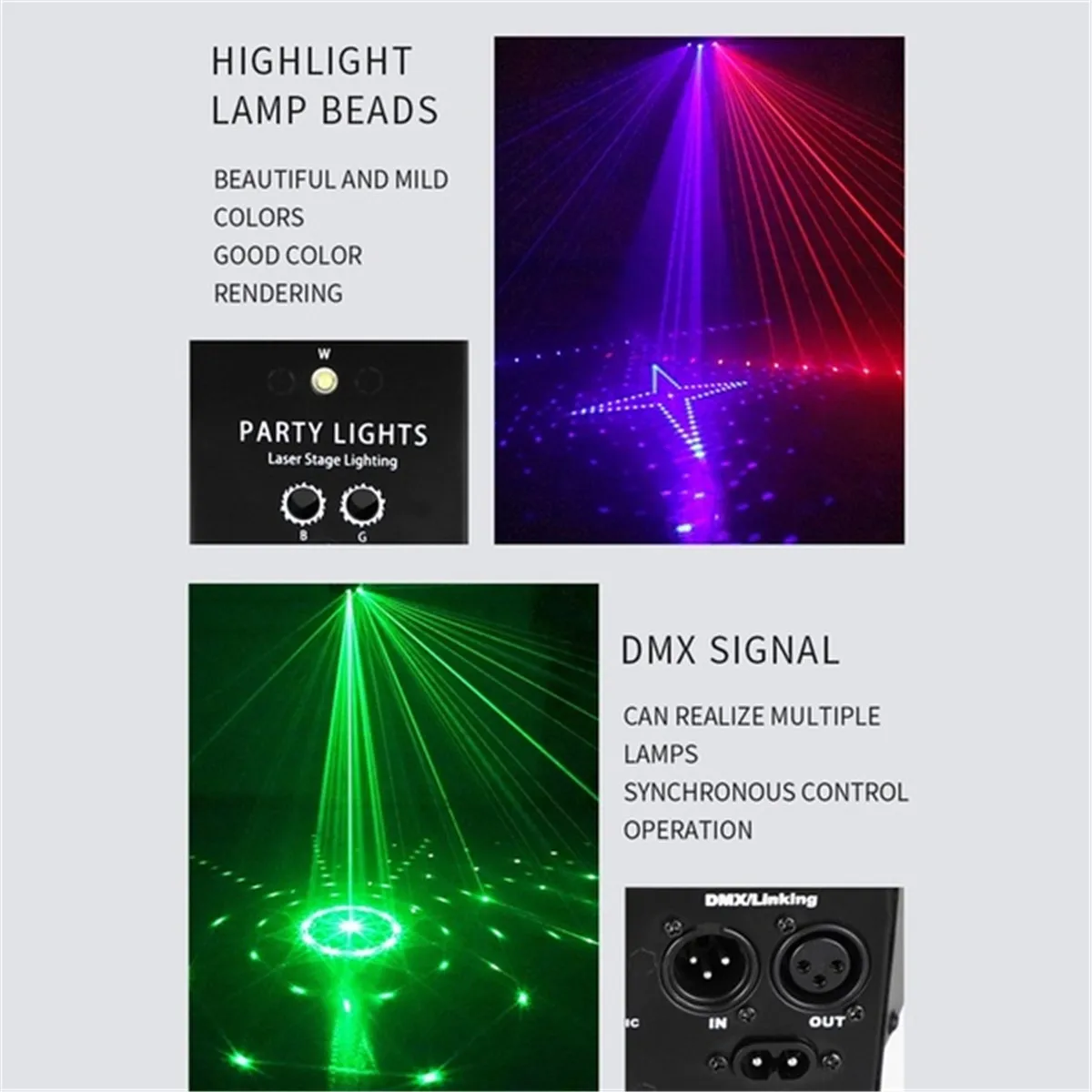 ● Небольшой размер, хороший эффект, функция памяти, два вида красный и зеленый светильник, в общей сложности 60 узоров.