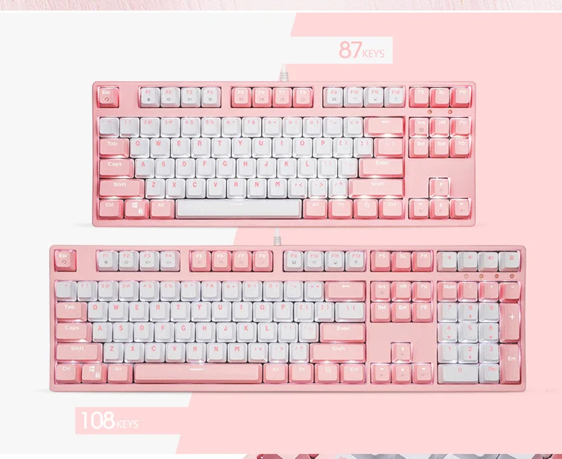 Розовая клавиатура для девочек игровая механическая клавиатура красный синий черный переключатель белая механическая клавиатура с подсветкой для ПК ноутбука
