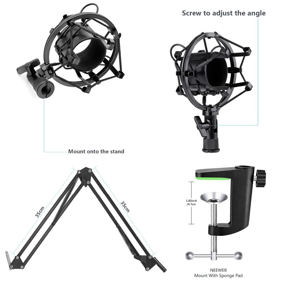 Обратите внимание: Макс. Диаметр зажима микрофона составляет 1,26 "/32 мм; Микрофон и маска фильтр ветрозащитный экран в комплект не входят; Подставка не подходит для микрофона Blue Yeti USB.