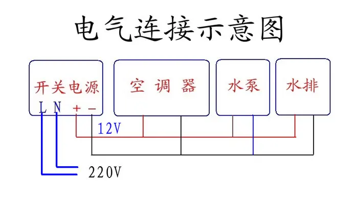 Ниже приведена схематическая схема электрического подключения: Поместите Красные линии кондиционера вместе, черный провод соединен с импульсным источником питания вместе
