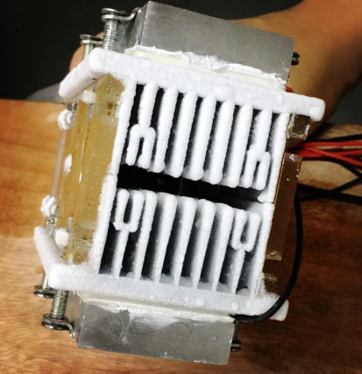 Ниже приведены фотографии, сделанные лабораторией (когда вентилятор не включен) алюминиевая пластина на охлаждающем конце матовая, если Вы включите вентилятор, затем воздуховод выдувает холодный ветер. Этот кондиционер может быть непосредственно установлен в пространстве, требующем охлаждения。