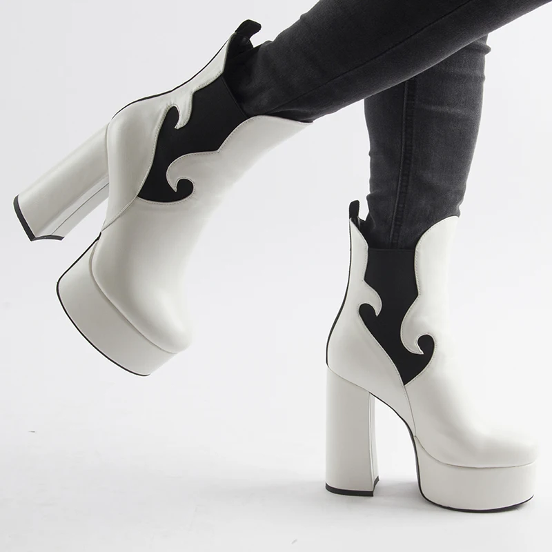 Perixir grueso botas de mujer de diseño 2020 nuevo invierno Super tacones altos plataforma dama de noche Club punta redonda zapatos de tobillo tamaño 36-41