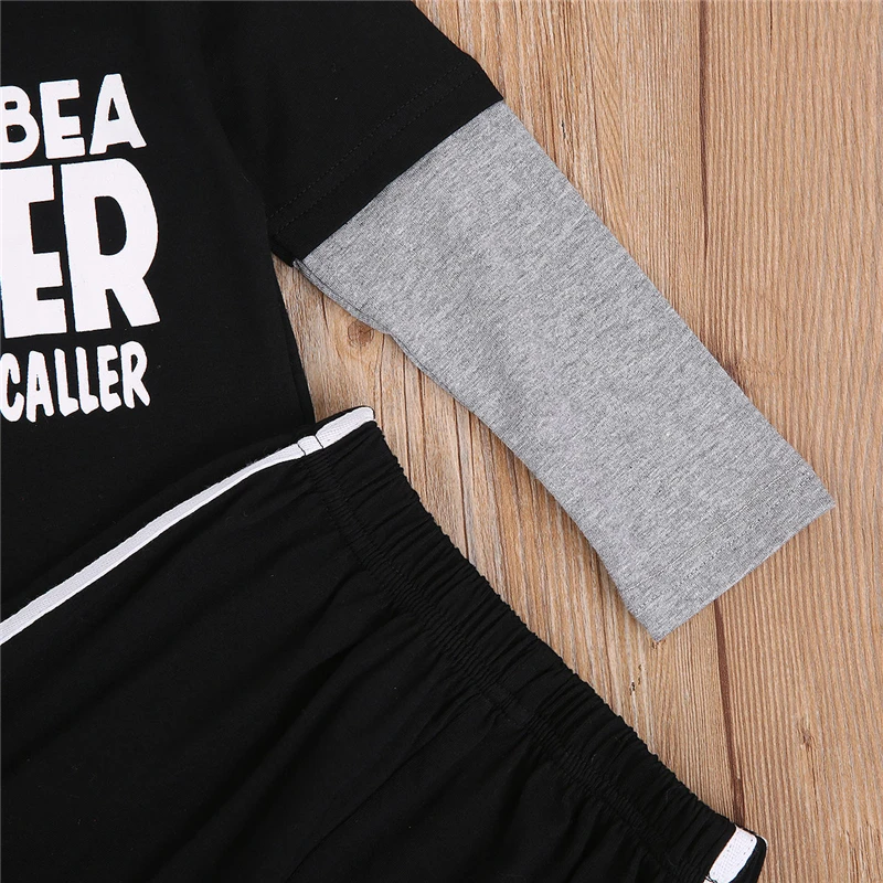 Осенняя одежда для маленьких мальчиков и девочек, комплект одежды с буквенным принтом, топы в полоску с длинными рукавами, комбинезон, длинные штаны, комплект из 2 предметов, пижамный комплект