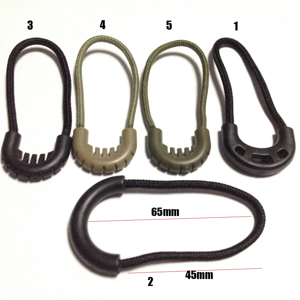 Total length:65mm(2.56'') Rope Length: 45mm(1.77'') Color: Black,Khaki,Army Green Style:as picture Quantity:5pcs Suitable for your backpack, travel packages, jacket and so on. Extend your zipper pulls with these handy, easy to fit accessories.