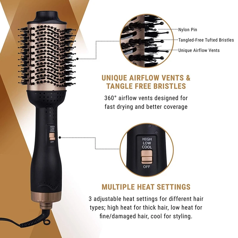 Множество настроек тепла и Многофункциональность: 3 регулируемых уровня тепла для различных типов волос, высокая температура для густых волос, низкая температура для тонких волос, гибкая настройка для фиксации вашей красивой прически. Этот испаритель может быть расположен ближе к коже головы для подъема. Также Используйте в качестве сушилки, стайлера, испарителя, чтобы ваши волосы были кудрявыми, волнистыми или выпрямленными. Идеально подходит для сухих, влажных волос и всех типов волос. Идеально подходит для домашнего использования, путешествий и даже офиса.