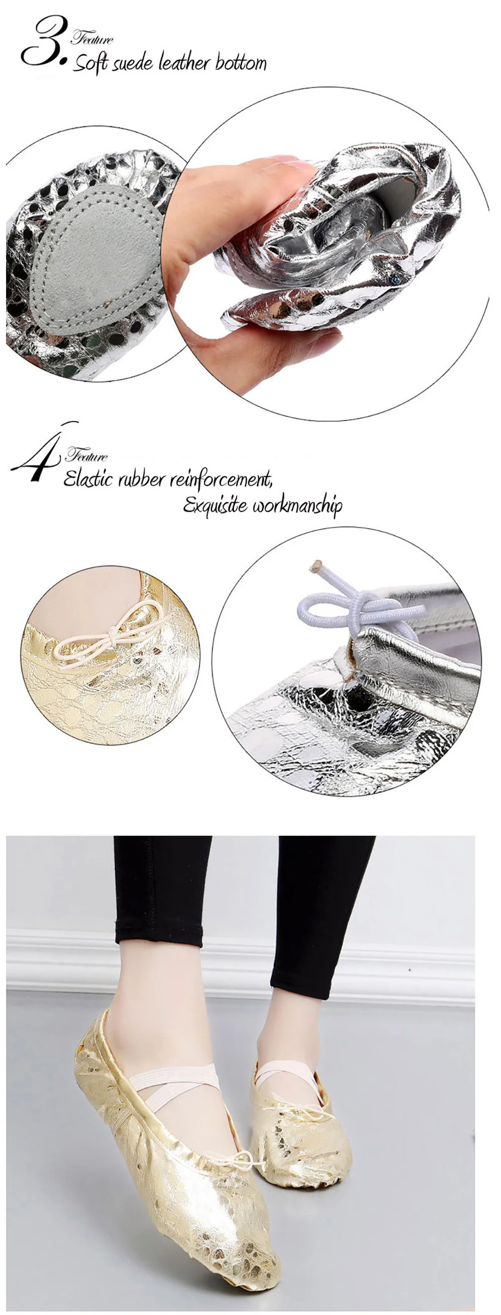USHINE Professional jonalne nowe ZLOTE srebrny korpus ksztaltujâcy trening klapki jogi silownia brzuch buty do taîca baletowego dzieci dziewczyny kobieta