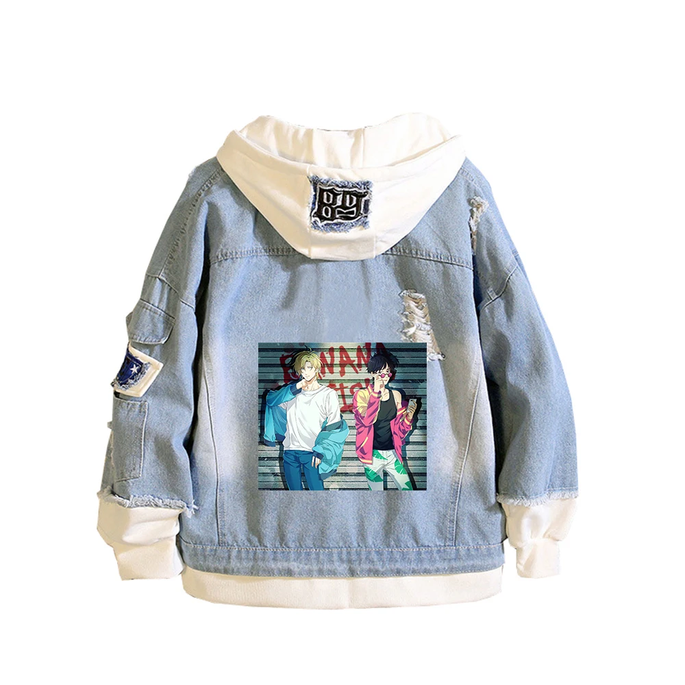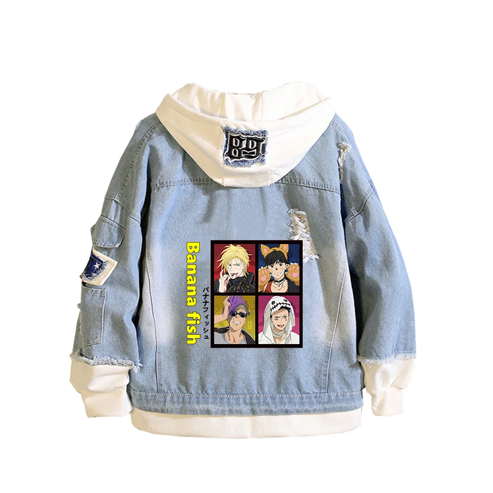 Банановая рыба, женская джинсовая куртка, унисекс, толстовка с капюшоном, длинный рукав, Harajuku, уличная одежда, аниме, осеннее пальто для пары