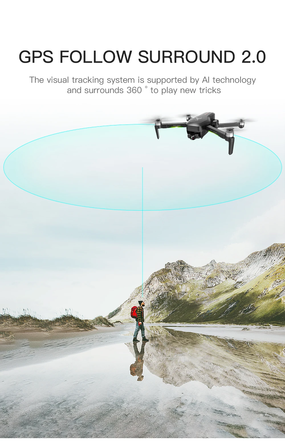 2.GPS Smart следующее: после того, как самолет покинет GPS, он откроет следующую функцию приложения, и самолет будет следовать за мобильным телефоном. Кроме того, изображение: Задайте объект съемки и следуйте за полетом автоматически.