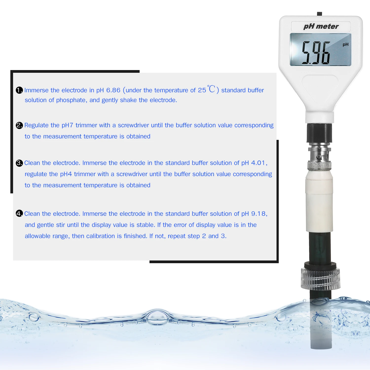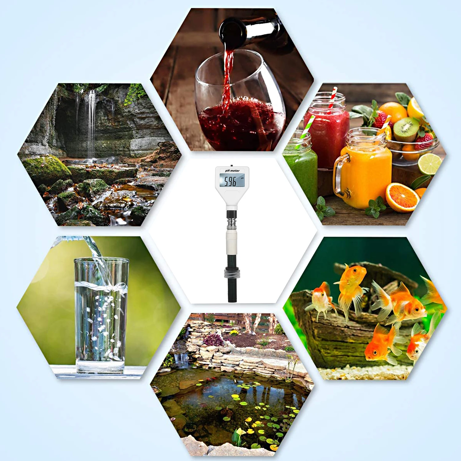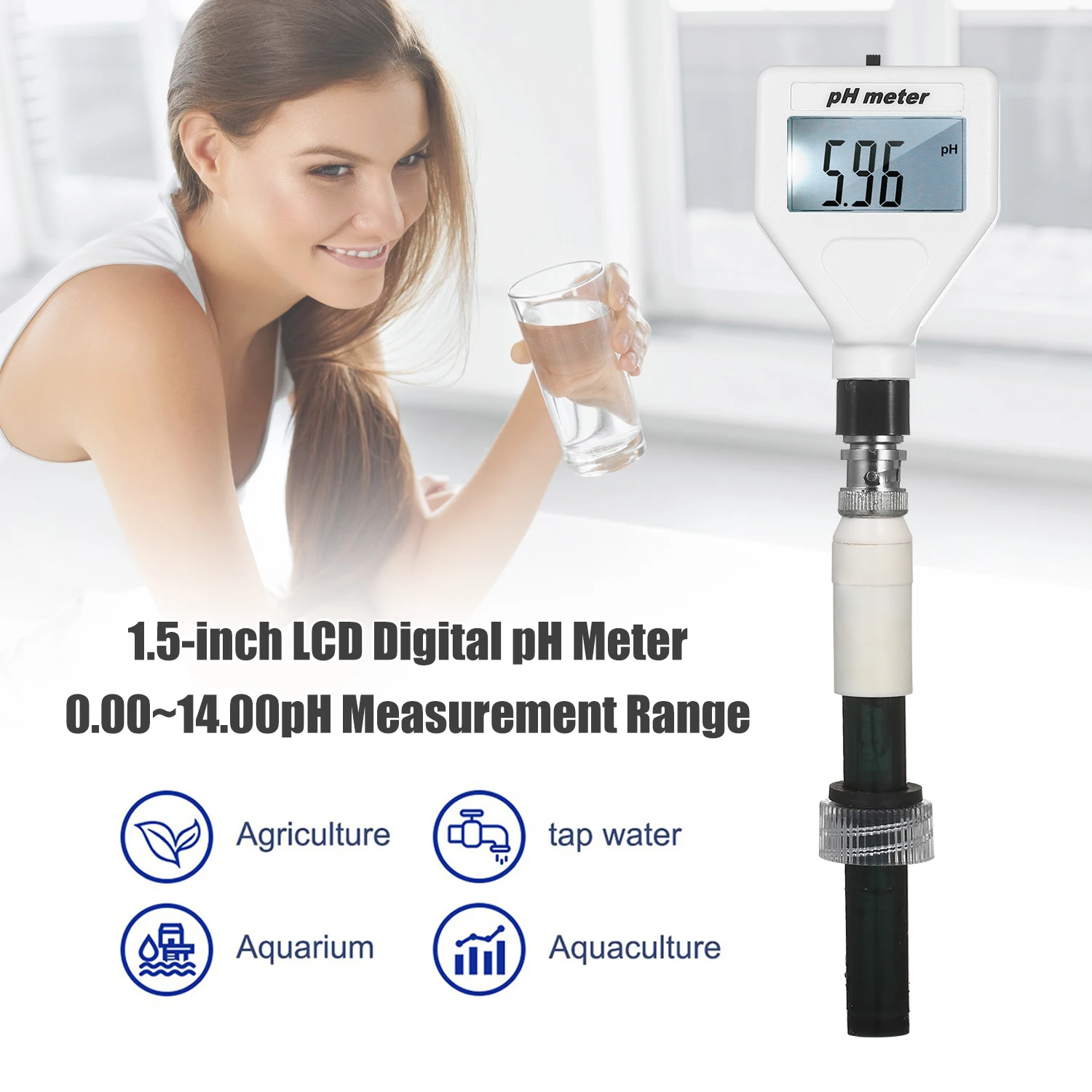Ph-метр используется для быстрого измерения значений pH жидкости. Особенности легкой эксплуатации, стабильная производительность и точное измерение, рН-метр широко используется в аквакультуре, рыбном пруду, аквариуме, другие промышленные и сельскохозяйственные производства и научные исследования, которые должны проверить значение pH и качество воды.