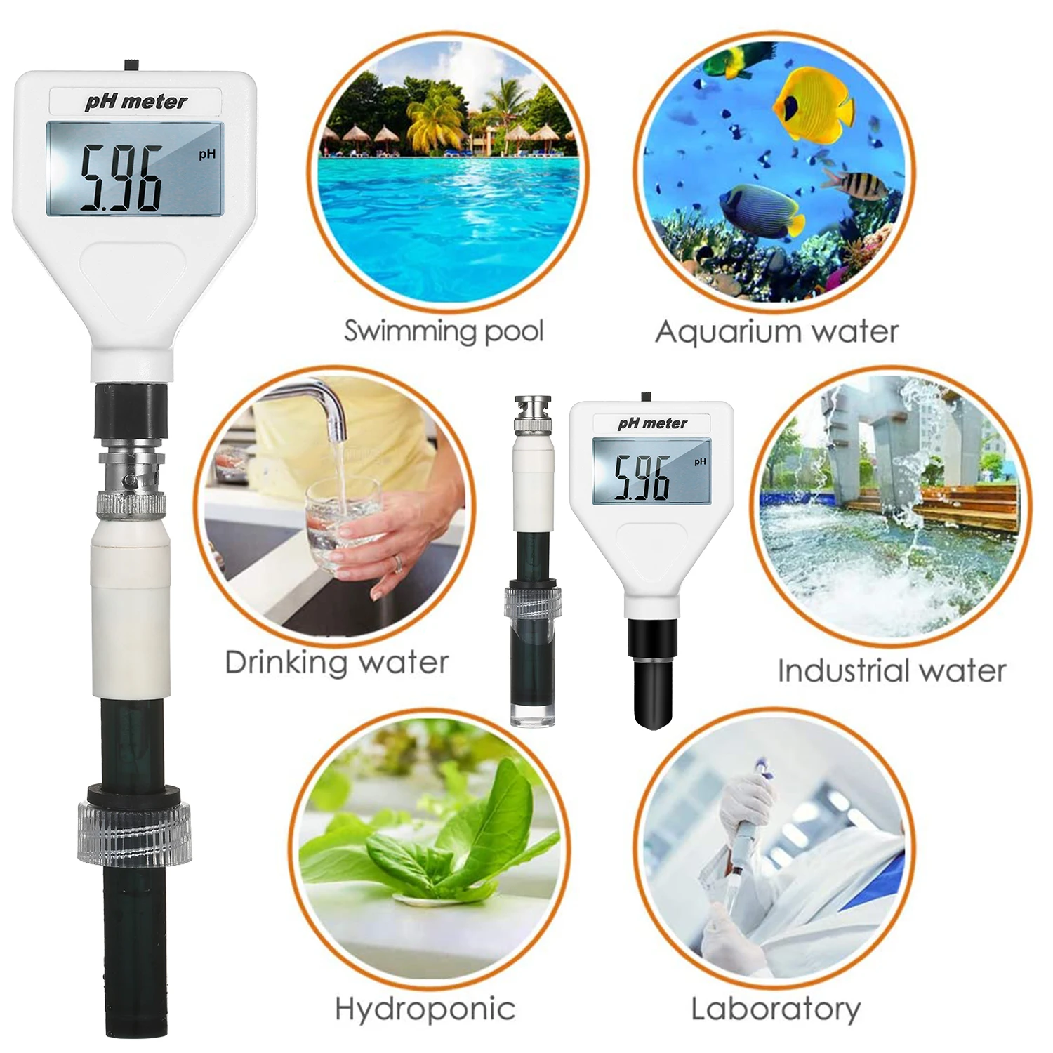 Широкое применение: Может использоваться для аквакультуры, рыбного пруда, аквариума, других промышленных и сельскохозяйственных производств и научных исследований, которые должны проверить значение pH и качество воды.
