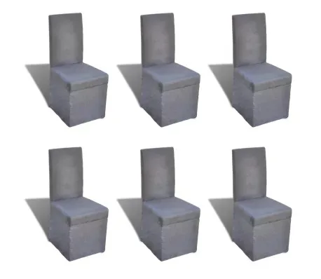 Цвет крышки стула: темно-серый Материал оправы: дерево Общие размеры: 43,5x41x95,5 см (Ш x Г x В) Высота сиденья от земли: 46 см Высота спинки: 51 см Уход: Машинная/ручная стирка Доставка включает в себя 6 обеденных стульев Материал: полиэстер: 100%