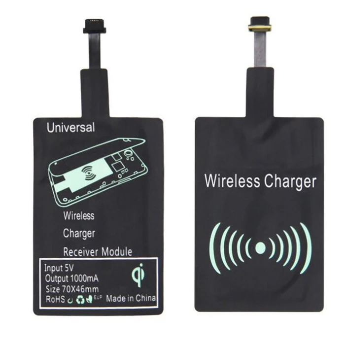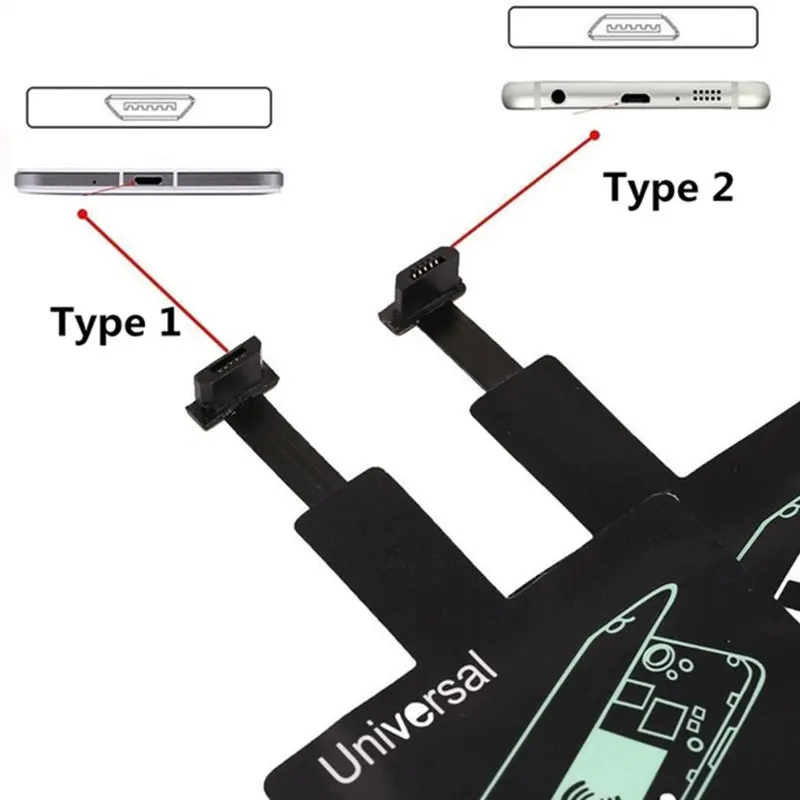 -100% новый бренд. -Идеально подходит для телефона, не нарушая внешний вид и производительность телефона. -Низкое излучение тепла, новая улучшенная высокая эффективность Qi беспроводной модуль приемника чип. -Ультратонкий, легкий и портативный, хорошо подходит для использования дома, в офисе, в общественных местах и т. д. -2 типа usb-порта на выбор: Micro USB 1 / Micro USB 2 (Type 1 isВерх широкий, нижний узкий/Тип 2 isВерхняя узкая, нижняя широкая.) Широкий интерфейс вниз/вверхХарактеристики: