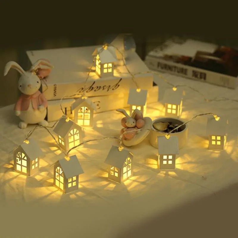1,5 м 10 шт. светодиодная гирлянда деревянный дом струнный светильник Декор для комнаты гирлянда лампа для свадебной вечеринки праздничный Сказочный светильник Новинка лампа теплый белый новогодний Рождественский Декор для дома