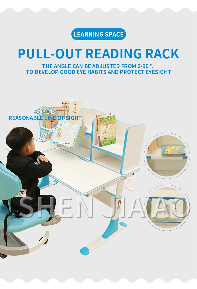 Модель: JH-Y03 Размер: 120*65*52-76 см Вес: 72 кг Панель: частицы массива дерева, микрокристаллическая панель Сфера применения: 3-18 лет Цвет: синий, розовый Материал: сталь, алюминиевый сплав Ткань: сетчатая ткань Материал стула: сетчатая ткань + алюминиевый сплав + высокоэластичная губкаДемонстрация изображения:
