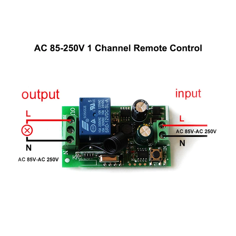 Входная мощность: 85 В-250 В переменного тока Ток в режиме ожидания:<5 мА Частота RF: 433 м Режим работы RF: супергетеродинный Чувствительность приема: >97dbm Расстояние передачи: 20-50 м (открытое пространство) Режим декодирования: программное декодирование Удаленное Хранение: 25 шт. Поддержка удаленного типа: код обучения 1527, фиксированный код (скользящий код может быть дизайном) Режим работы: Мгновенный, тумблер, фиксация Тип проводки: фиксированная клемма Размер печатной платы: 53,8*31,2 мм.
