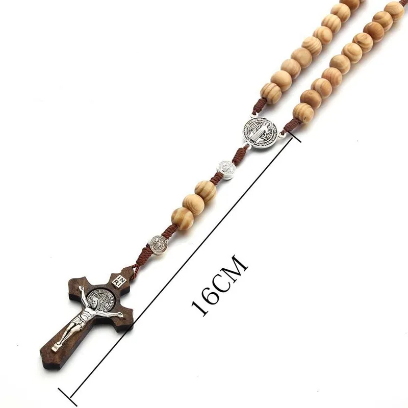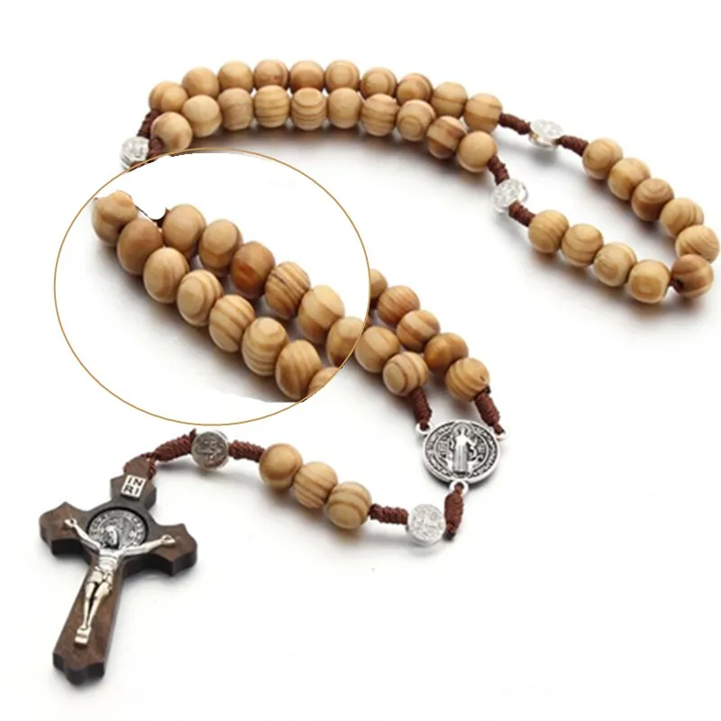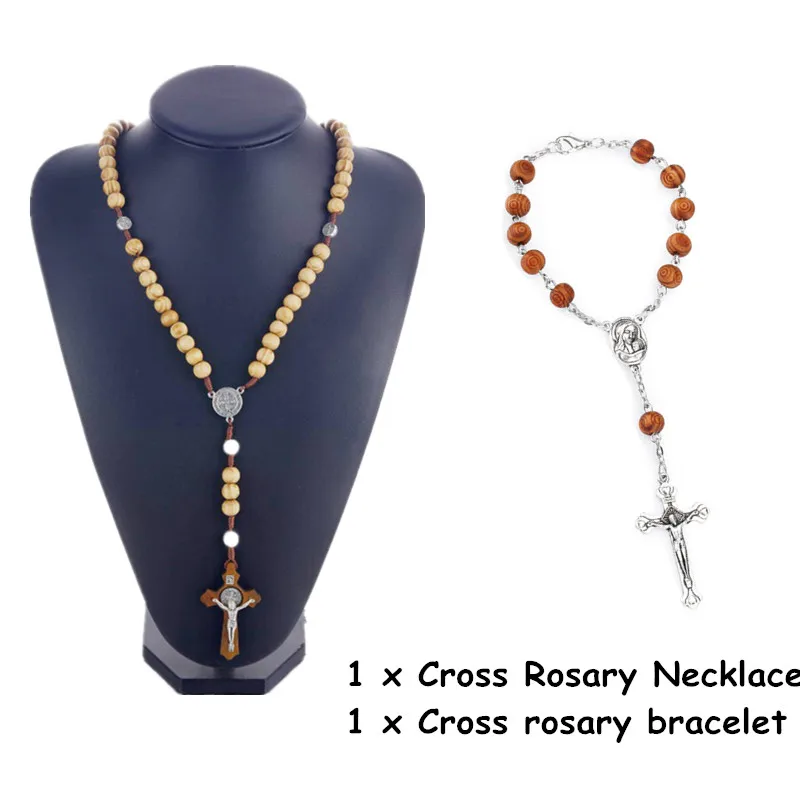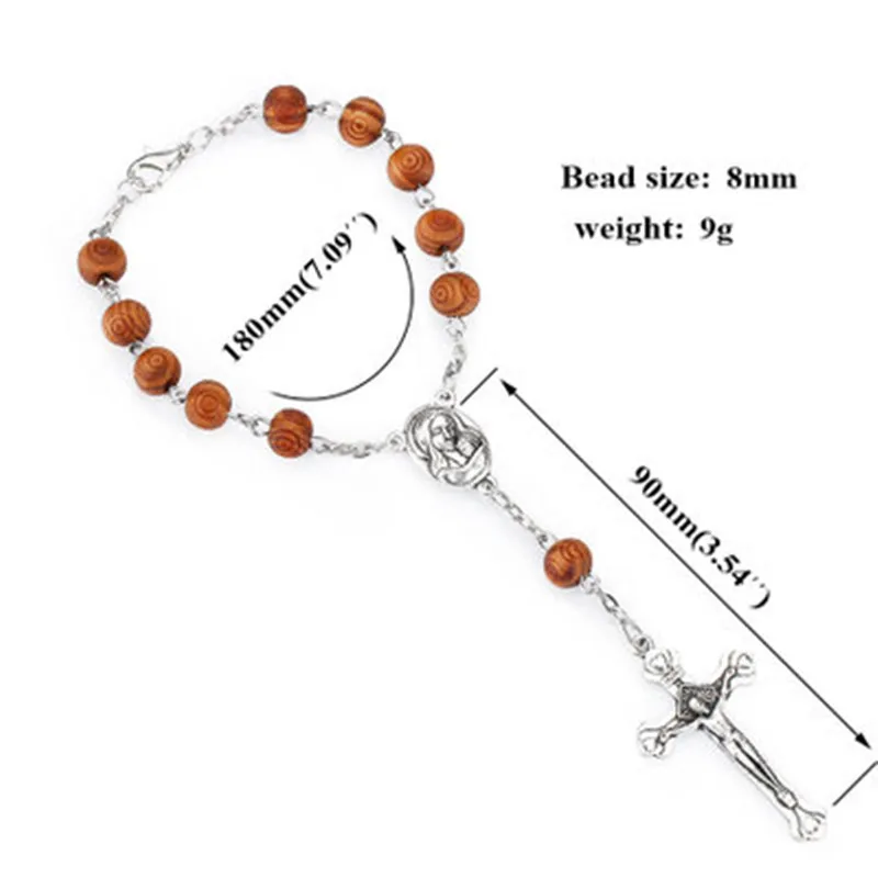 Католическая Мода Религиозные христианские ювелирные изделия Мадонна ручной работы деревянные бусины крест четки ожерелье браслет набор