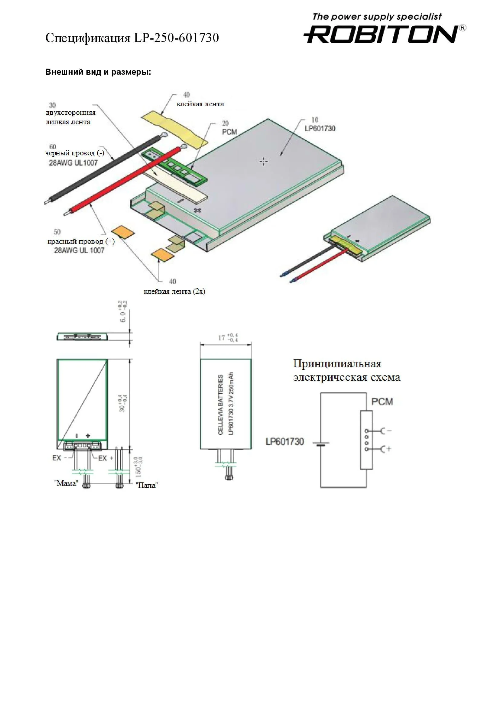Спецификация:LP 601730 250мАч Пром.упаковка