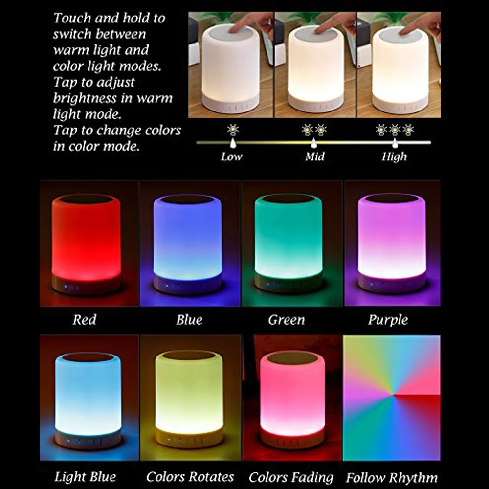 Ночник Bluetooth динамик беспроводной портативный умный сенсорный контроль прикроватная Настольная лампа с красочными светодиодами, подарок для детей-подростков