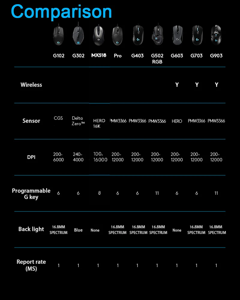 Logitech Original 99new MX518 легендарная Классическая игровая мышь 16000DPI HERO Sensor для PC Gaming overwatch DOTA2 Mouse Gamer