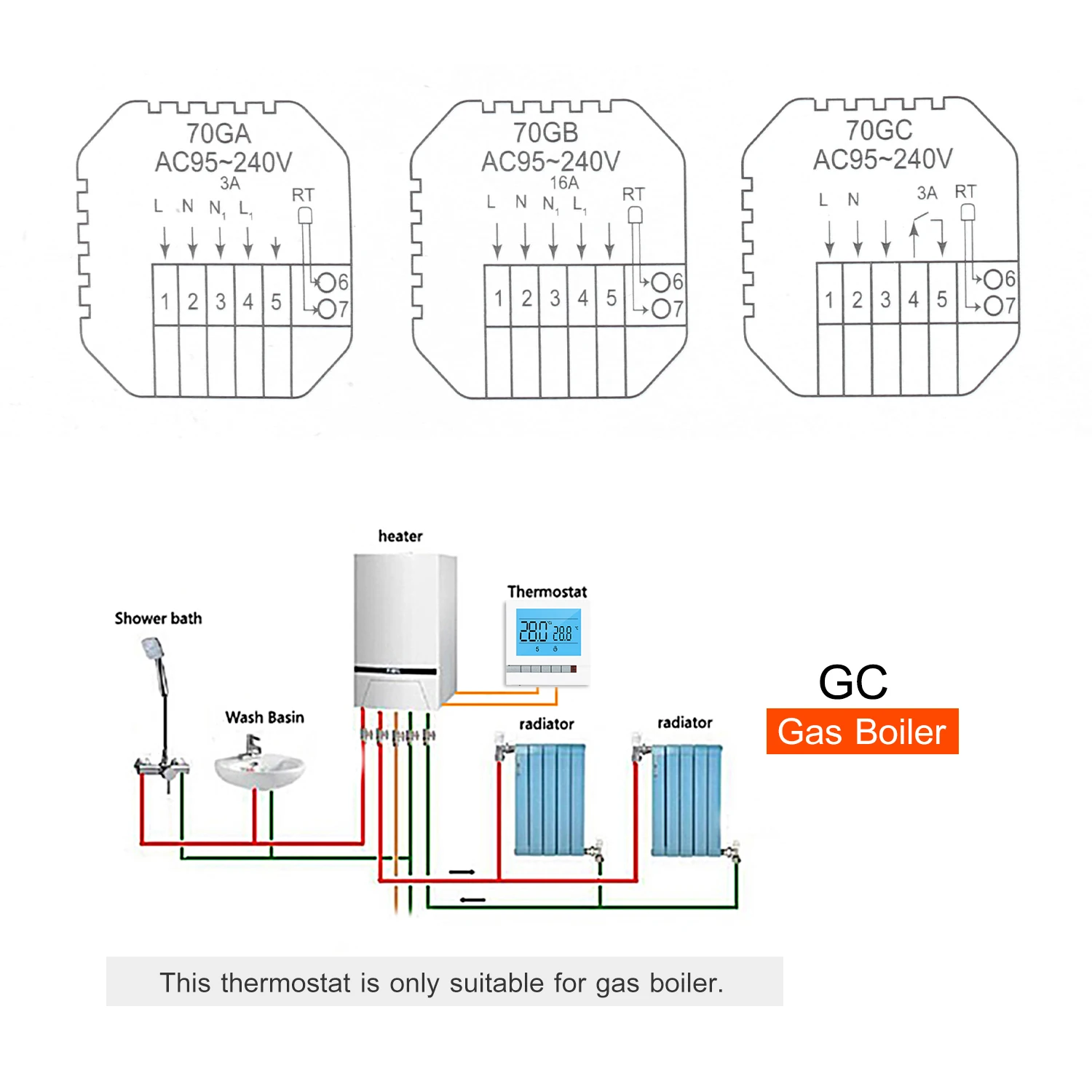 Применение: термостат для электрического отопления (3A)/термостат для нагрева воды (16A)/термостат для газового котла (25a) (опционально)