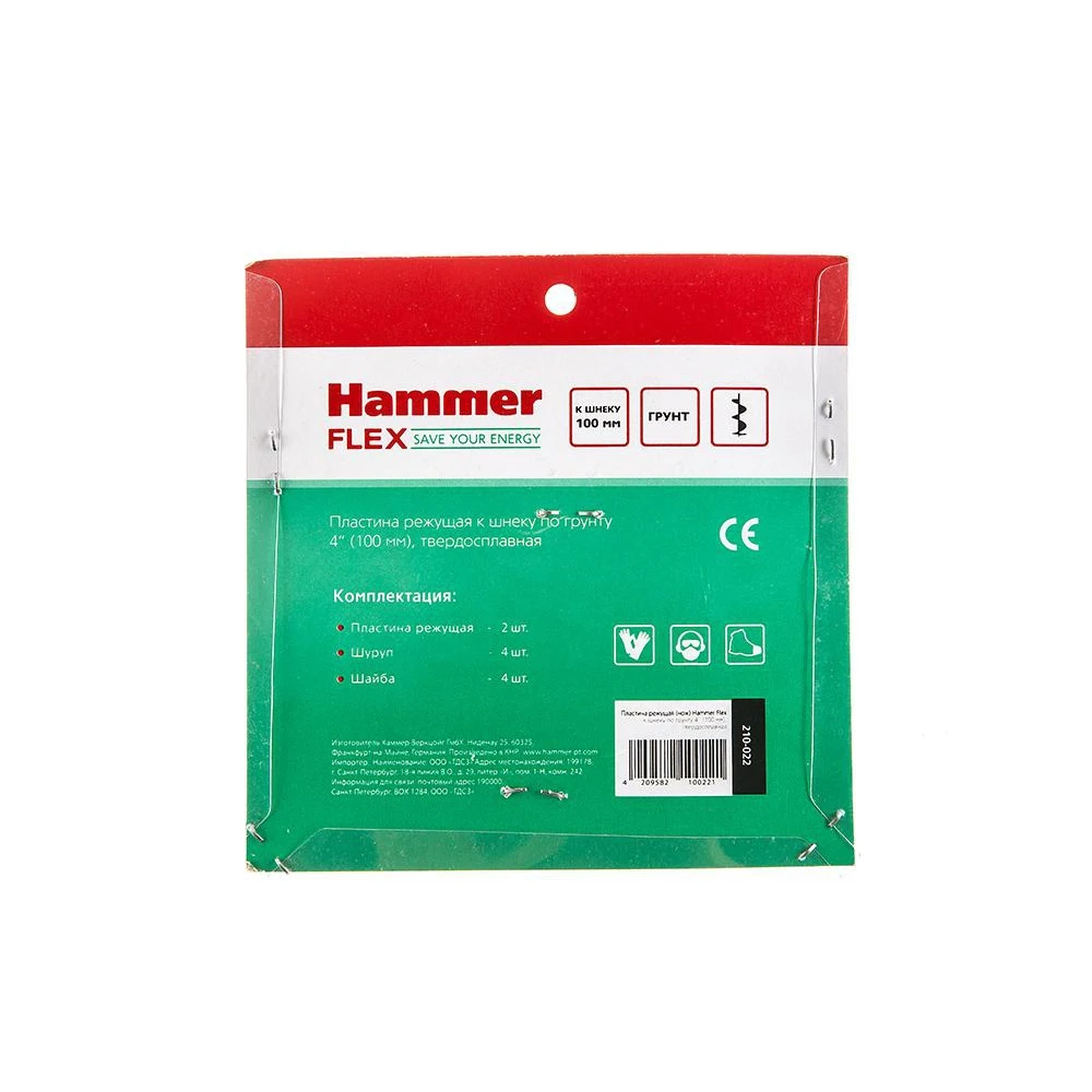 Пластина режущая (нож) Hammerflex 210-022 к шнеку по грунту 4'' (100мм) HG, нерж. сталь Комплектация: * Пластина режущая: нержавеющая сталь - 1шт. * Шуруп - 2шт. * Шайба - 2шт.