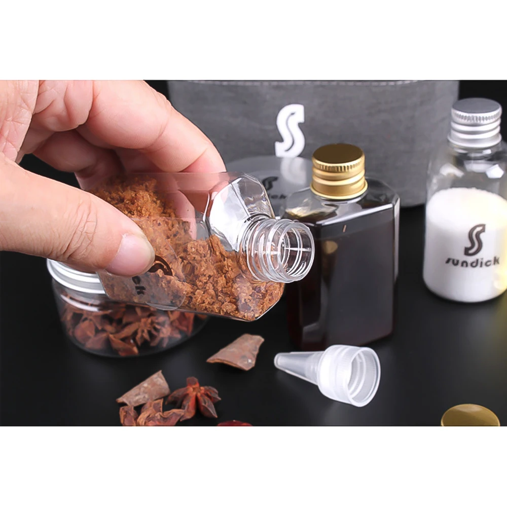 -Легко носить с собой, 6 прозрачных пластиковых флаконов для ароматизатора специй для их превосходного увеличения любой активности на свежем воздухе.