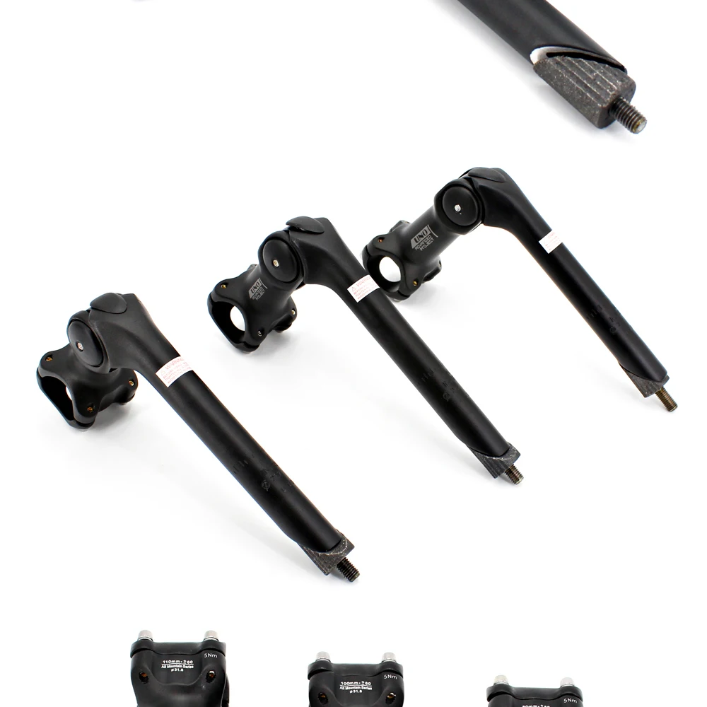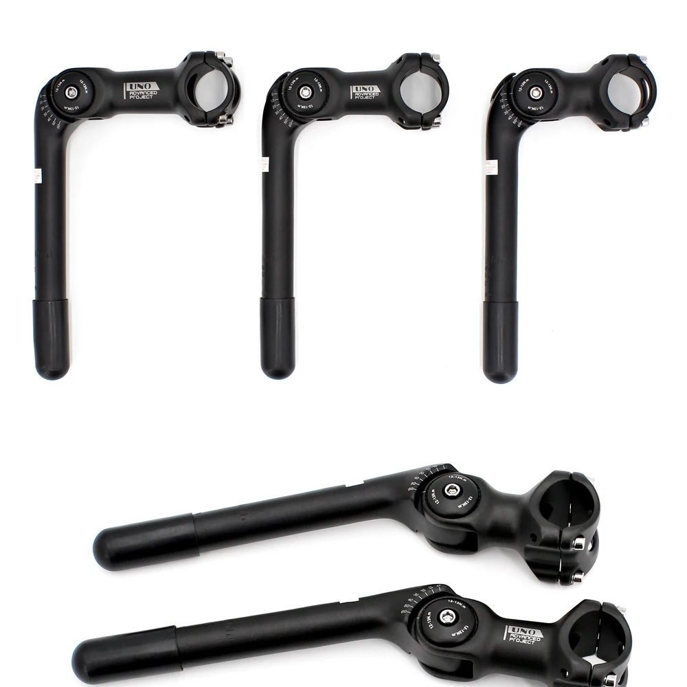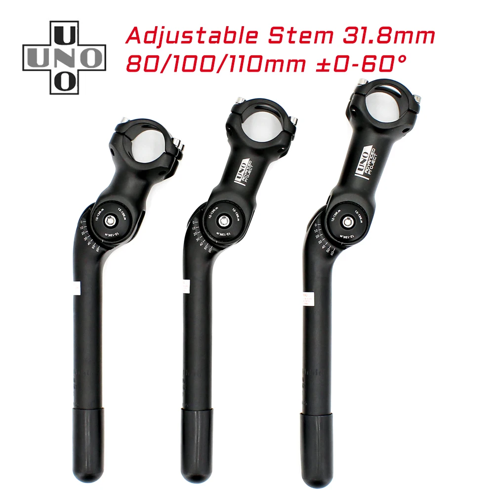 Name: High Strength Forged Retro Angle Adjustable bike stem with quill * Brand: UNO * Material:6061 T6 Aluminum Alloy * Color: Sand Black * Handlebar Clamp Stem Diameter: 31.8mm * Front Fork Insert steerer Diameter: 22.2mm * Insert Post length: 180mm * Angle: 0-60 Degree * Weight: About 415-430g * Use for: City Road Bike,travelling bike with tooth grain front fork * Length: 80mm/100mm/110mm (Because of production technique,dimension error may be around ±5mm, weight error around ±10g) Follow our store or recommend us to your friends, we'll have extra discount/gifts for you.Just contact us before order.