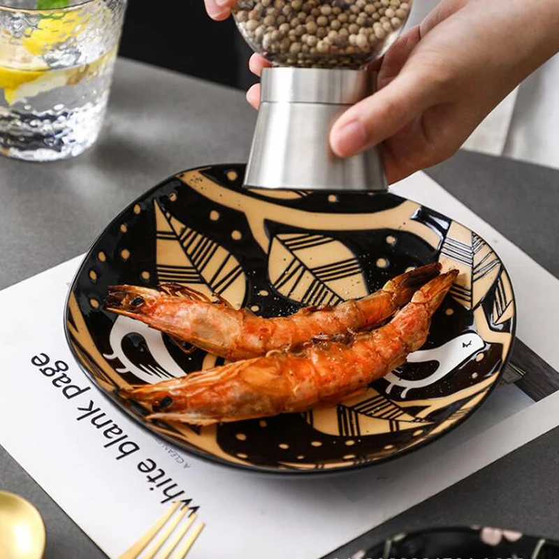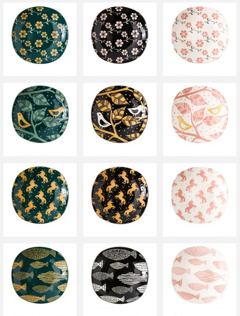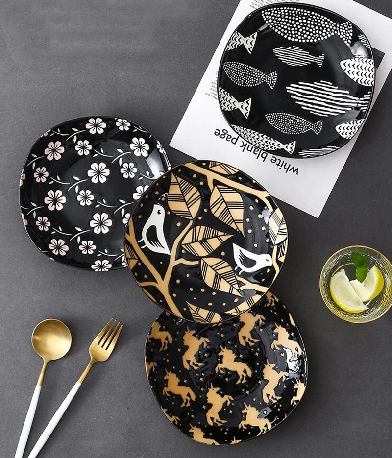 8 "Скандинавская керамическая тарелка для еды, Бытовая керамика, ретро рыба, птица, цветное блюдо покрытое глазурью, салатная тарелка, блюдо, столовая посуда