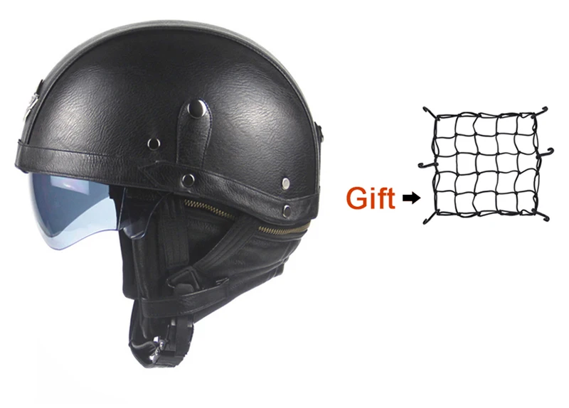 Основной винтажный шлем с открытым лицом имеет вид традиционного 3/4-го шлема, отделанного черной кожей. Шлем: высококачественный корпус из искусственной кожи + АБС-пластик, ударопрочный, защита от проникновения Буферный слой: EPS высокой плотности для отличной амортизации Подкладка: съемная внутренняя подкладка, влагопоглощающая, впитывающая пот, дышащая