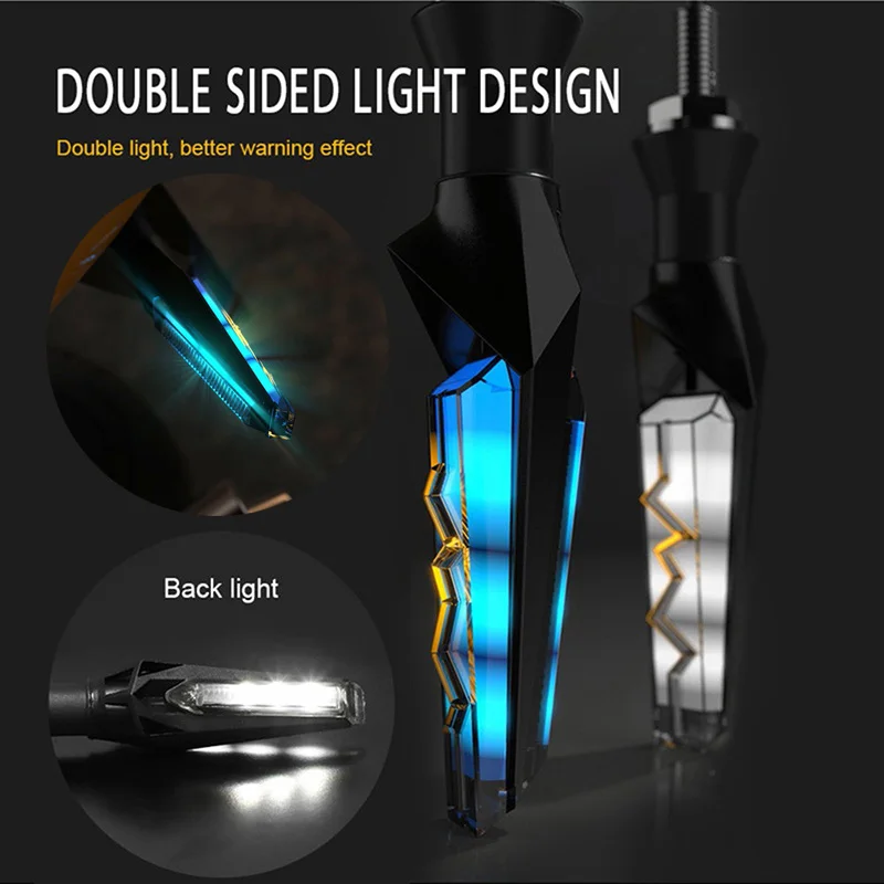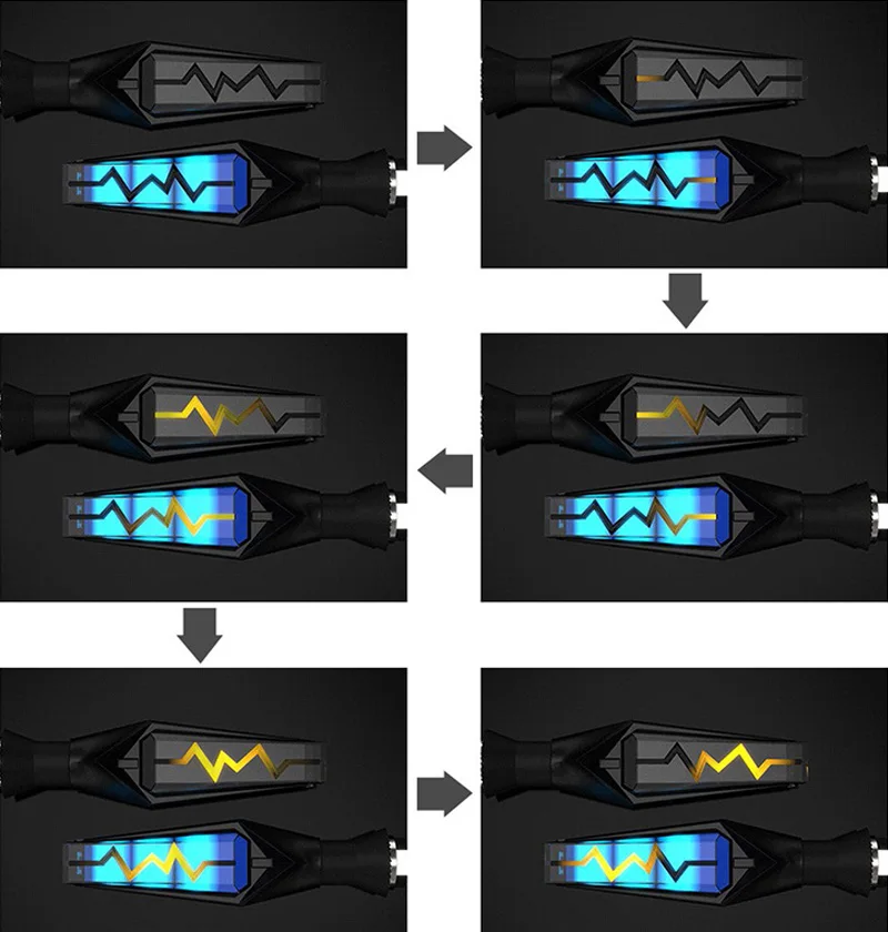 -Супер яркий 18 светодиодный сигнальный сигнал поворота воды. -Спереди: Янтарный ECG пульсационный водный сигнал поворота + дневной ходовой светильник (белый/синий/красный). -Задняя часть: дневной ходовой светильник (белый/синий/красный).