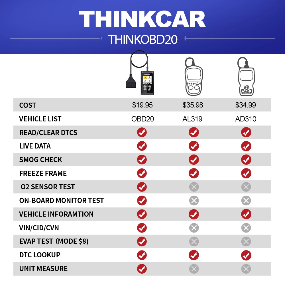 THINKOBD 20 совместим с большинством американских, европейских и азиатских моделей, изготовленных с 1996 года.