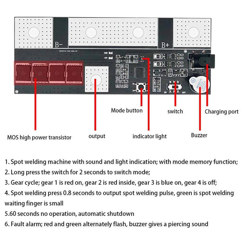 Этот продукт представляет собой компактную панель управления точечной сварки. Он питается от 3 серий железо-литиевых батарей.