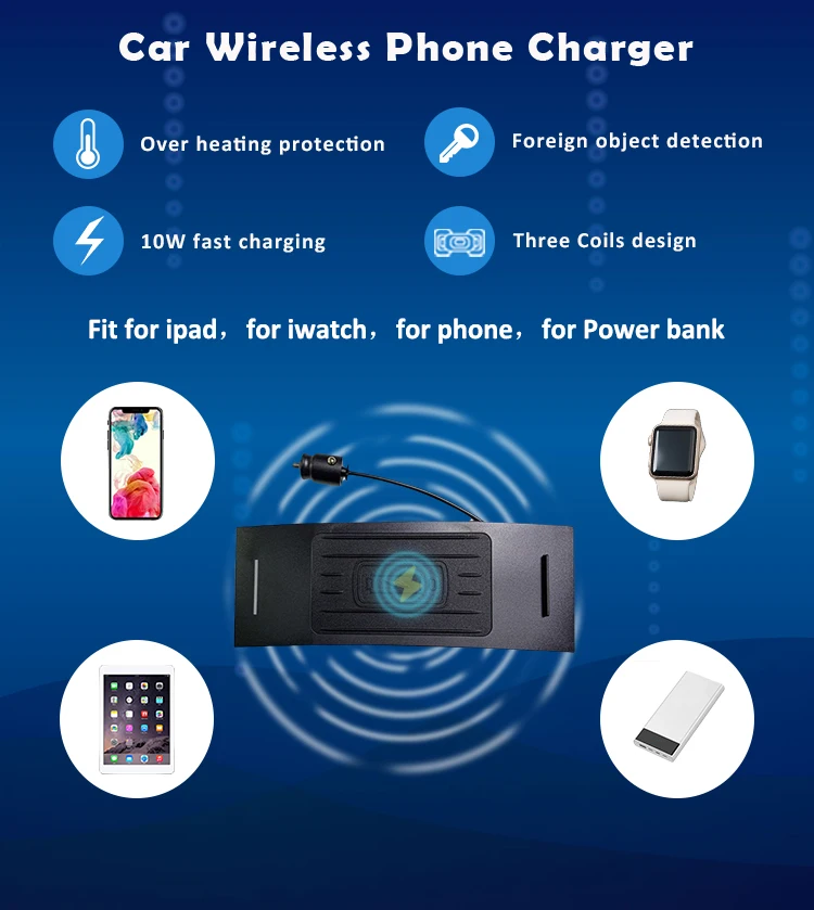 Подходит для транспортных средств ниже: Для Audi A6 C7 A7 RS6 2012 2013 2014 2015 2016 2017 2018 Выходная Максимальная мощность: 10 Вт Максимальный выходной ток: 1.5A Рабочая температура:-20-+ 70 градусов Цельсия Установка: Подключите зажигалку непосредственно Материал: АБС-пластик и металл Гарантия: 1 год Функция и преимущество: 1. Можно использовать для зарядки смарт-ключей с ЖК-дисплеем 2. Светодиодный светильник с индикатором зарядки 3. Вставьте зажигалку, легко установить 4. Порт быстрой зарядки QC3.0 5,1. Катушки из чистой меди Примечания: 1: лучше найти магазин для ремонта автомобиля, чтобы избежать возможных проблем с безопасностью 2: скорость зарядки зависит от режима работы телефона. 3: убедитесь, что на автомобильном зарядном устройстве нет магнита или металла 4: безопасное вождение, проверьте мобильный телефон или зарядную платформу, опасна во время вождения 5: убедитесь, что корпус телефона имеет обычную толщину. Или это повлияет на зарядку, если слишком толстый, не снимая корпус