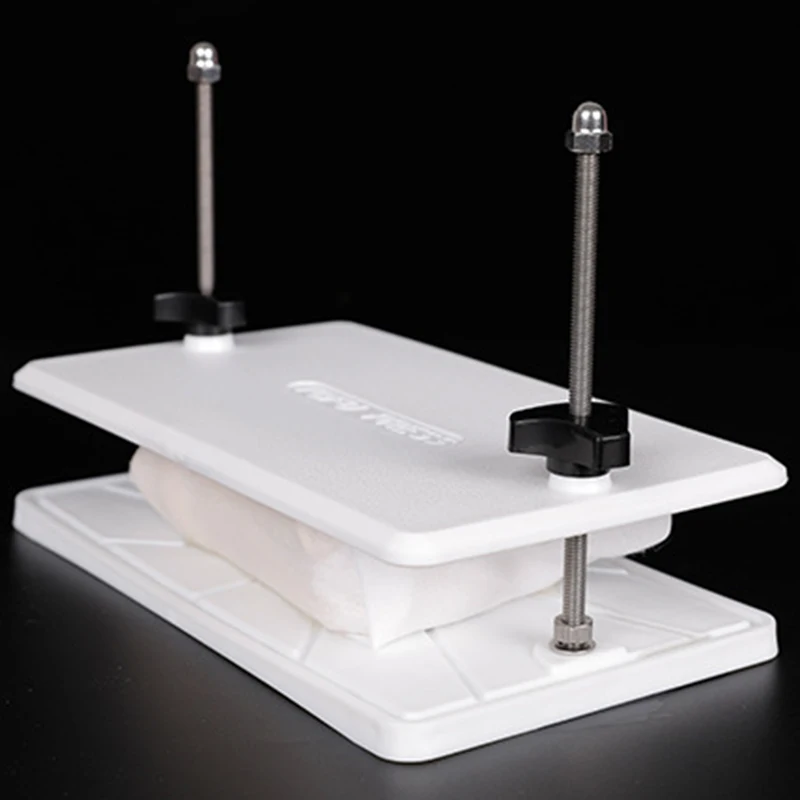 Простота в использовании и чистке: Поместите тофу в центр пластины и покрутите оба винта равномерно, пока он не будет плотно прилегать к тофу. Затем поместите на пластину сбоку, чтобы вода могла вытекать, что делает очистку очень легкой. Периодически затягивайте (каждые несколько минут) до желаемой сухости Вашего тофу.