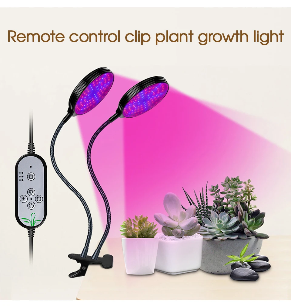 ① Переключатель. ② 5 уровней затемнения светильник. ③ Три режима переключения светильник (красный светильник, светильник, красный и синий светильник), последовательность переключения-Одна Головка-двойная головка-Три головки. ④ Переключатель времени-три периода времени (4 ч, 8 ч, 12 ч), 24-часовой цикл времени. Установите светодиодные светильники для выращивания растений в пределах 20 см от растения, а ширина облучения составляет около 20 см.