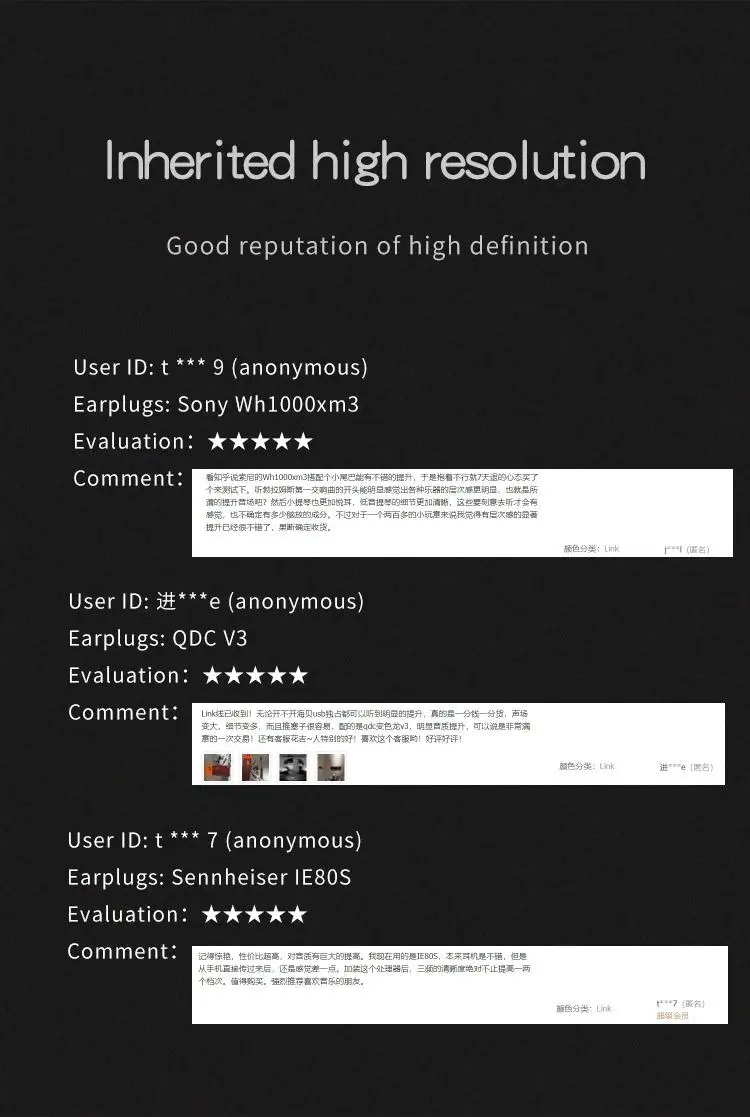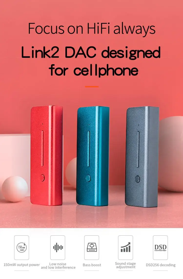 Чип DAC: ESS8118EC Частота дискретизации: PCM: 16-32 бит/44 кГц-384 кГц DSD: DSD64-256 Выходная мощность: 150 МВт @ 32 Ом Частотная характеристика: 20 Гц-20k Гц (± 0,5 дБ) S / N: 110 дБ перекрестный разговор: ≥ 75 дБ усиление басов: + 6 дБ THD + N: 0.018% @ 1 кГц входной порт: Type-c Выход порт: 3,5 мм порт для наушников Сопротивление: 16-300 Ω Размеры: 62,9*21*12 мм Вес: 21 г